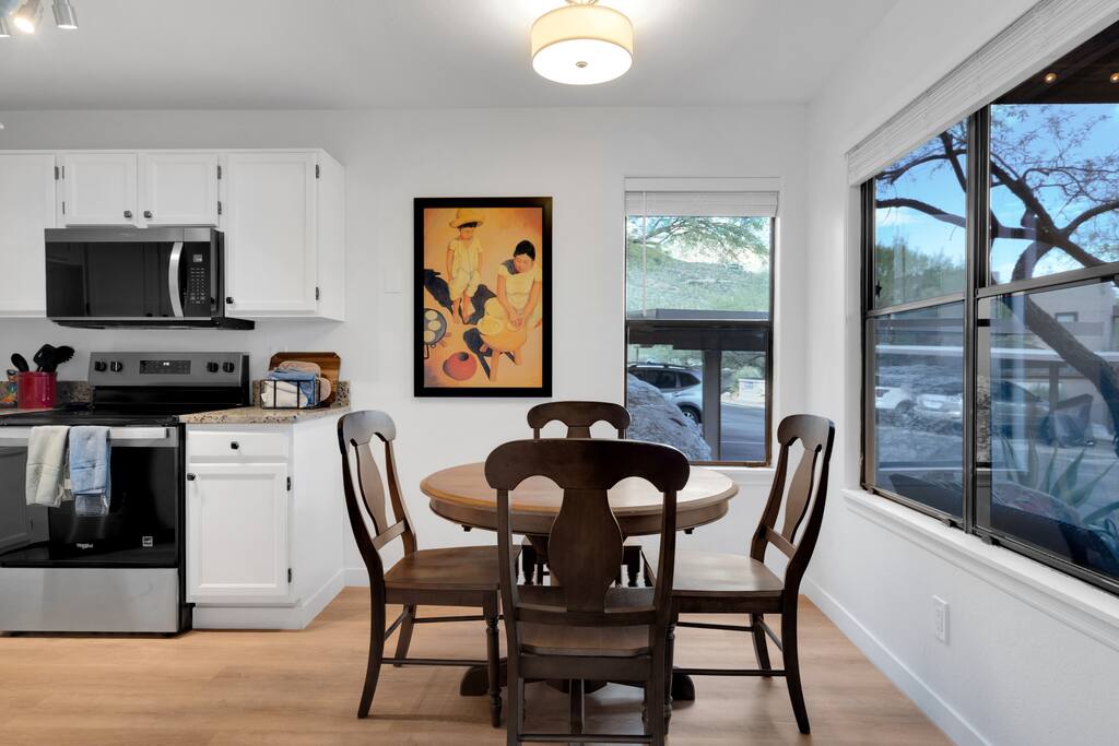 Relax in our newly remodeled 2BR/2BA condo with stunning Catalina Mountain views. Enjoy new wood-look flooring, granite countertops, stainless steel appliances, and a full-size washer and dryer. Take advantage of heated pools, a spa, fitness center, and nearby Ventana Canyon trails and golf. Perfect for couples or families seeking a peaceful desert escape with modern comfort, Southwest charm, and easy access to dining, hiking, and shopping in Tucson.