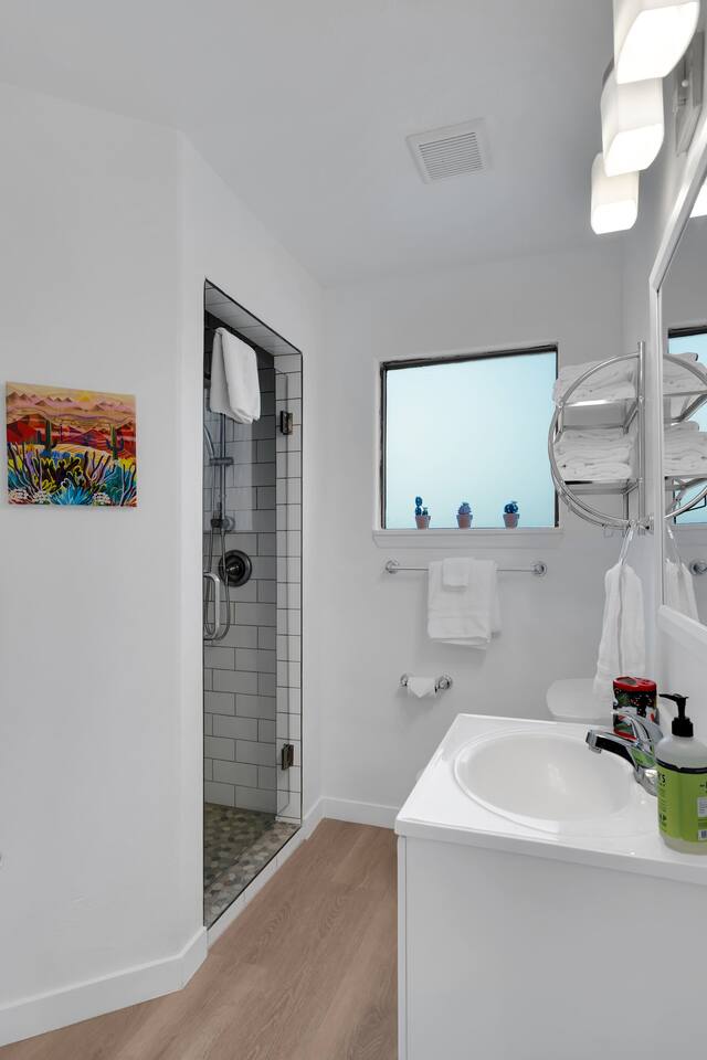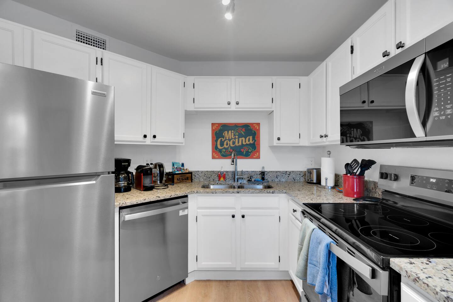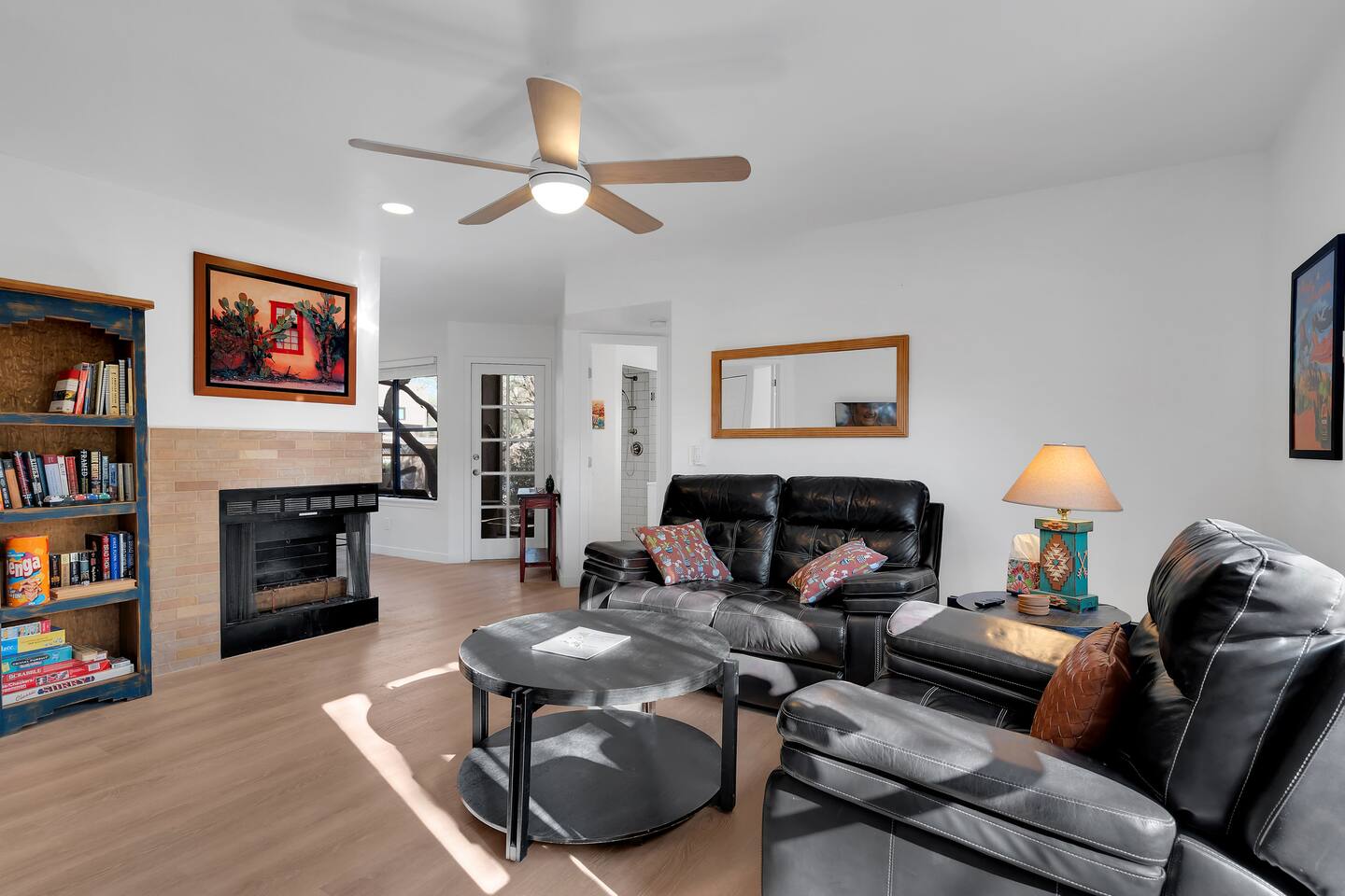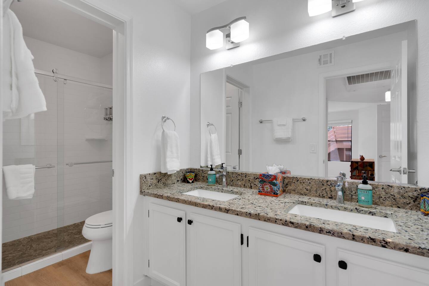 Welcome to Sonoran Oasis Experience tranquility in this beautifully remodeled 911 sq. ft. ground-level condo featuring Southwest-inspired décor, mountain views, and modern comforts. Living Room • Power-reclining leather loveseat and chair for ultimate comfort. • 55″ 4K Roku Smart TV with free YouTube TV subscription. • Fast Xfinity Wi-Fi and Ecobee-controlled HVAC for personalized comfort. Primary Bedroom & Bath • King bed with hotel-quality linens and a cozy Southwestern quilt. • 43″ Smart Roku TV and ceiling fan for comfort. • Walk-in closet and private ensuite with granite double vanity and rainfall shower. Guest Bedroom & Bath • Queen bed with premium linens and ceiling fan. • 40″ Smart Roku TV for streaming your favorite shows. • Spacious closet and private bath with rainfall shower. Kitchen • Fully equipped with stainless steel refrigerator, glass cooktop, standard oven, and dishwasher. • Coffee options include Nespresso and 12-cup drip maker, plus blender, toaster, and cookware. • Stocked with essentials and utensils for convenient at-home dining. Extras • Brand-new Whirlpool washer and dryer with detergent and softener provided. • Screened-in Arizona Room with mountain views — perfect for reading or relaxing in the evening. Community Amenities • Two heated pools, whirlpool spas, fitness center, and lighted tennis/pickleball court. • Private gated access to the Ventana Canyon hiking trail for scenic walks and wildlife viewing. Convenience Nearby • Many local restaurants, coffee shops, and grocery options just minutes away. • Close to Loews Ventana Canyon Resort for golf and fine dining, Sabino Canyon for hiking, and upscale shopping in Tucson.
