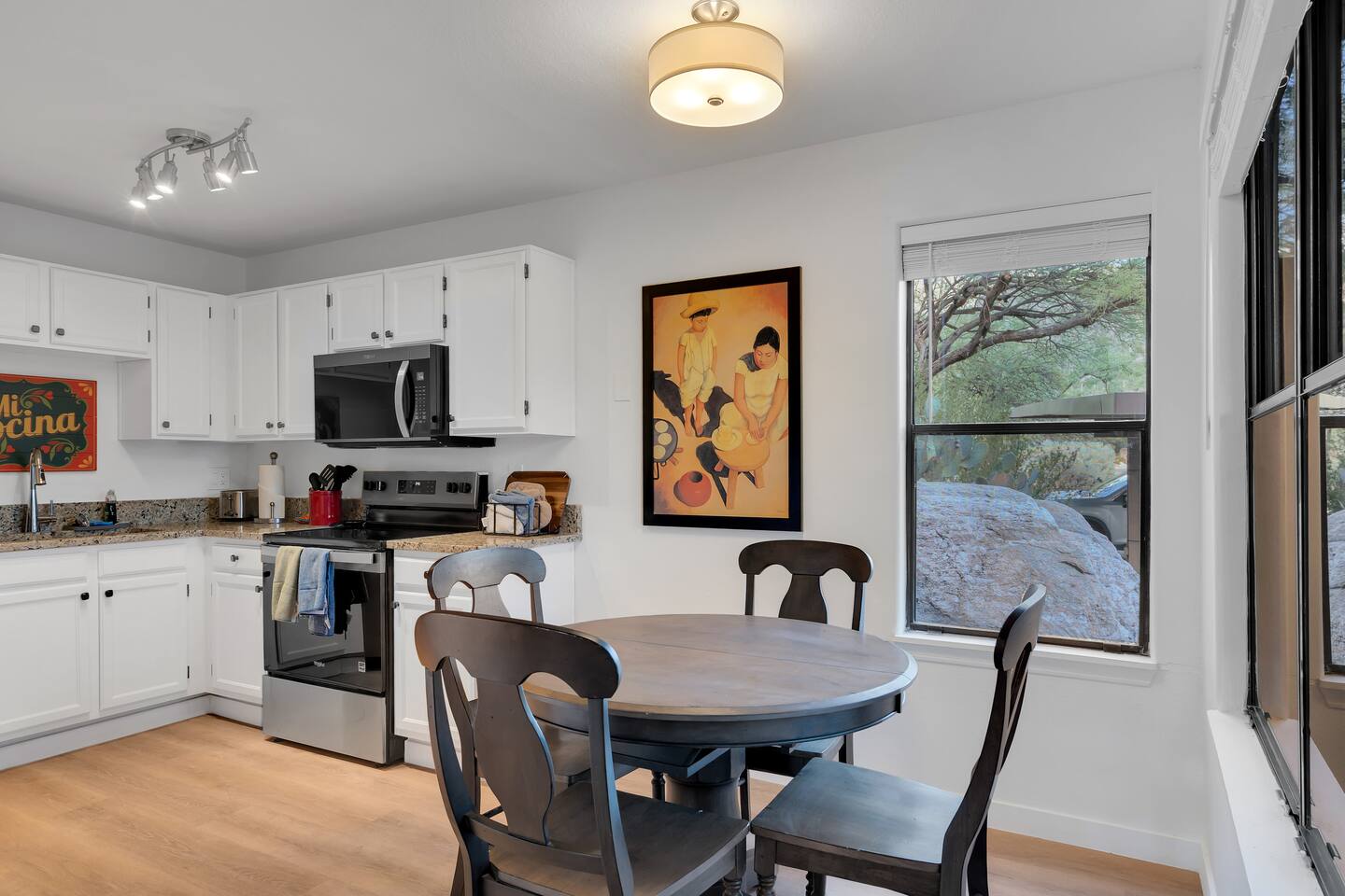 Relax in our newly remodeled 2BR/2BA condo with stunning Catalina Mountain views. Enjoy new wood-look flooring, granite countertops, stainless steel appliances, and a full-size washer and dryer. Take advantage of heated pools, a spa, fitness center, and nearby Ventana Canyon trails and golf. Perfect for couples or families seeking a peaceful desert escape with modern comfort, Southwest charm, and easy access to dining, hiking, and shopping in Tucson.